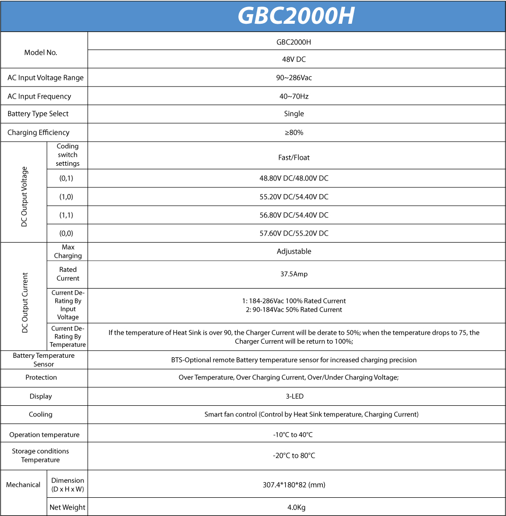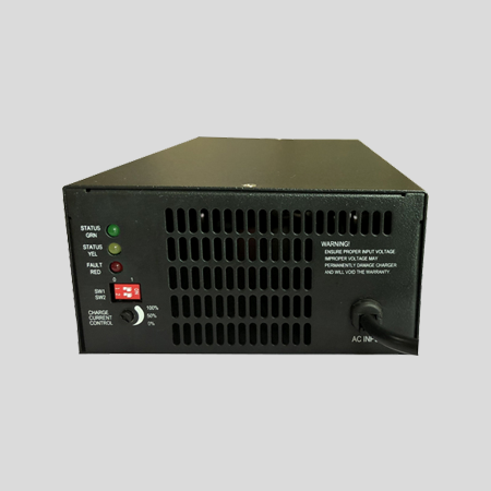 In normal operation, the unit accepts AC input voltage and converter it to DC output which has a three-stage timer-based charging algorithm.